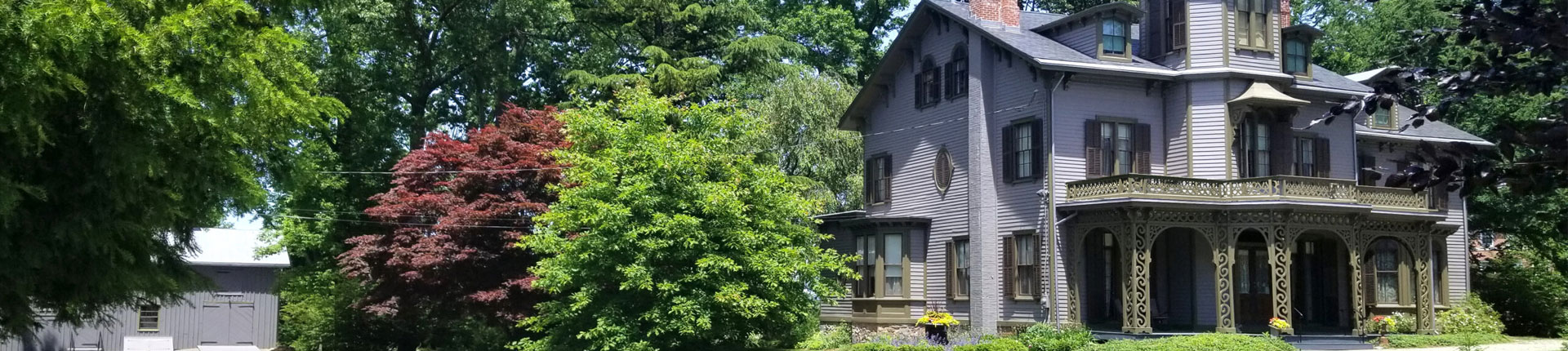 Acorn Hall and its carriage house now reflect their 1860-1880 exterior color scheme.